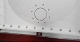 玻璃鋼水箱步:按照客戶提供的圖紙找出進(jìn)水、出水、溢流、排污、氣孔的開口位置,畫上印作為標(biāo)記,然后找準(zhǔn)法蘭的角度與水箱板之間的凸面位置,放準(zhǔn)為好,用鉛筆畫上印,在對(duì)準(zhǔn)法蘭的螺栓口進(jìn)行打孔,如以下示意圖: