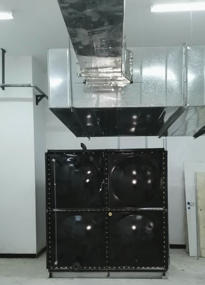 搪瓷鋼板水箱高度為1.5m:底板厚度是3#,側(cè)一板(下側(cè)板)厚度是3# ,側(cè)二板(上側(cè)板)是3#,頂板厚度是2#。