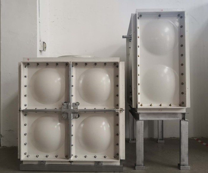 1、槽鋼:一般組合式玻璃鋼水箱槽鋼底座的橫、縱向槽鋼距離1m,其槽鋼架的全體強(qiáng)度及承受力較差,而我們水箱的橫、縱向槽鋼的距離是0.5m,銜接選用悉數(shù)滿焊,能夠根底安定,強(qiáng)度較高。