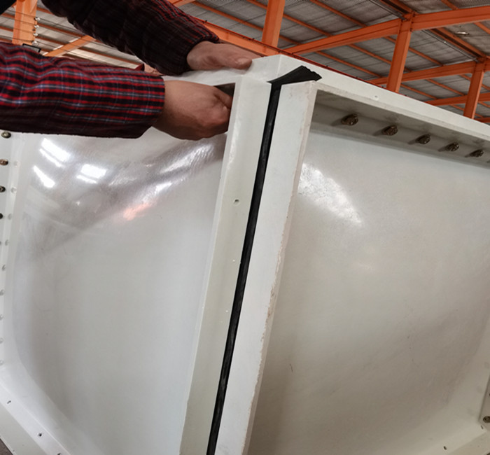 SMC水箱組裝就是用模壓的小塊,到施工現(xiàn)場組裝成大的水箱。外面要用角鋼進行固定的,角鋼搭出個水箱模型,在上面鋪玻璃鋼平板,拼縫處再現(xiàn)場多糊幾層方格布或氈,縫隙。首先安裝底邦,根據(jù)水箱單板上的印號及說明,排列、連接水箱的底板,騰翔玻璃鋼水箱在安裝時要注意玻璃鋼水箱的底板,同時在兩張單板之間添加密封膠條,用φ10的螺栓連接。使底板密封,螺栓加力時要均勻加力,每個螺栓加力3-4次,不得性用力過猛,否則因用力不均勻而造成裂板現(xiàn)象,再用固定角鐵連接底板和槽鋼,使玻璃鋼水箱箱體更加牢固的固定在槽鋼底座上。其次安裝各邦,根據(jù)水箱單板上的印號及說明,找出水箱邦體的各層邦號,并且預(yù)先分開,用螺栓組裝邦體。把水箱板立好,找正,使邦板與底邦形成90度夾角,并且加密封膠條,緊固螺栓。然后安裝內(nèi)拉筋,內(nèi)拉筋根據(jù)水箱尺寸,找對拉筋的數(shù)量及長度。用拉筋板測量拉筋對絲緊固部位,畫印、打眼、上對絲緊固,使拉筋平整的與水箱箱體保持平衡。如箱體與拉筋之間有較大誤差,可通過調(diào)整螺栓緊固程度來調(diào)整誤差大小,直到把誤差調(diào)整到小為止。緊接著是安裝蓋板,水箱頂部蓋板安裝時,要均勻的緊固螺栓,不能用力過大或太小。把水箱的所有緊固件調(diào)整好后,根據(jù)圖紙開孔位置,開好各水管口,上好法蘭以便對接閥門。后水箱全部安裝完畢后,進行統(tǒng)一的檢查、調(diào)整、試水24小時不滲漏玻璃鋼水箱為合格。安裝玻璃鋼水箱時要仔細、認真,一步一步,步步為贏把每一個步驟都要做的天衣無縫,才能達到玻璃鋼水箱滴水不漏。