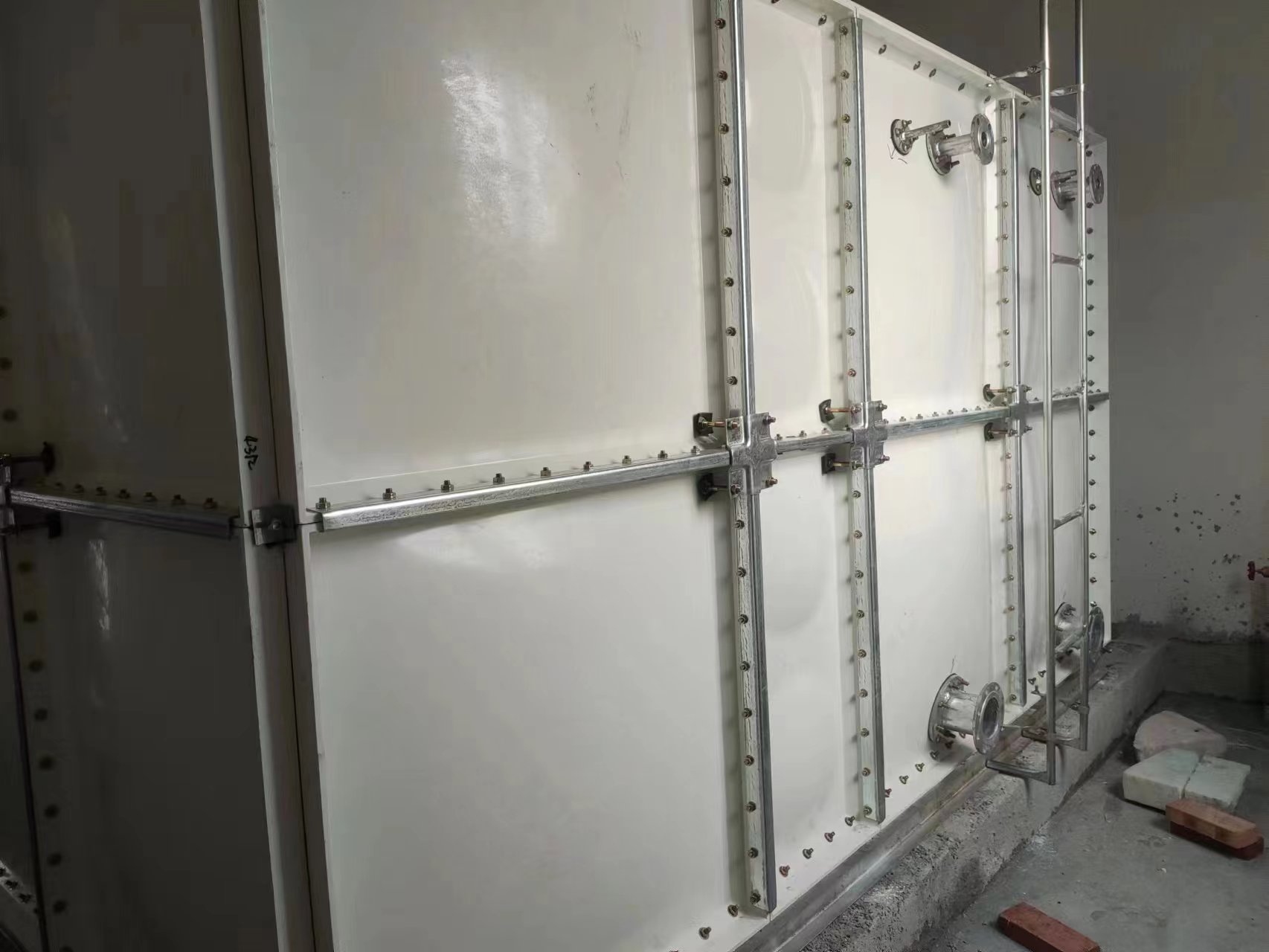 我廠承接的山東省濟南市濟南二建幼兒園28立方玻璃鋼消防水箱已經(jīng)安裝試水完成,客戶對我公司的產(chǎn)品質(zhì)量和安裝服務(wù)表示認可和肯定。此次水箱安裝在樓頂,用于消防儲水。安裝現(xiàn)場圖如下: