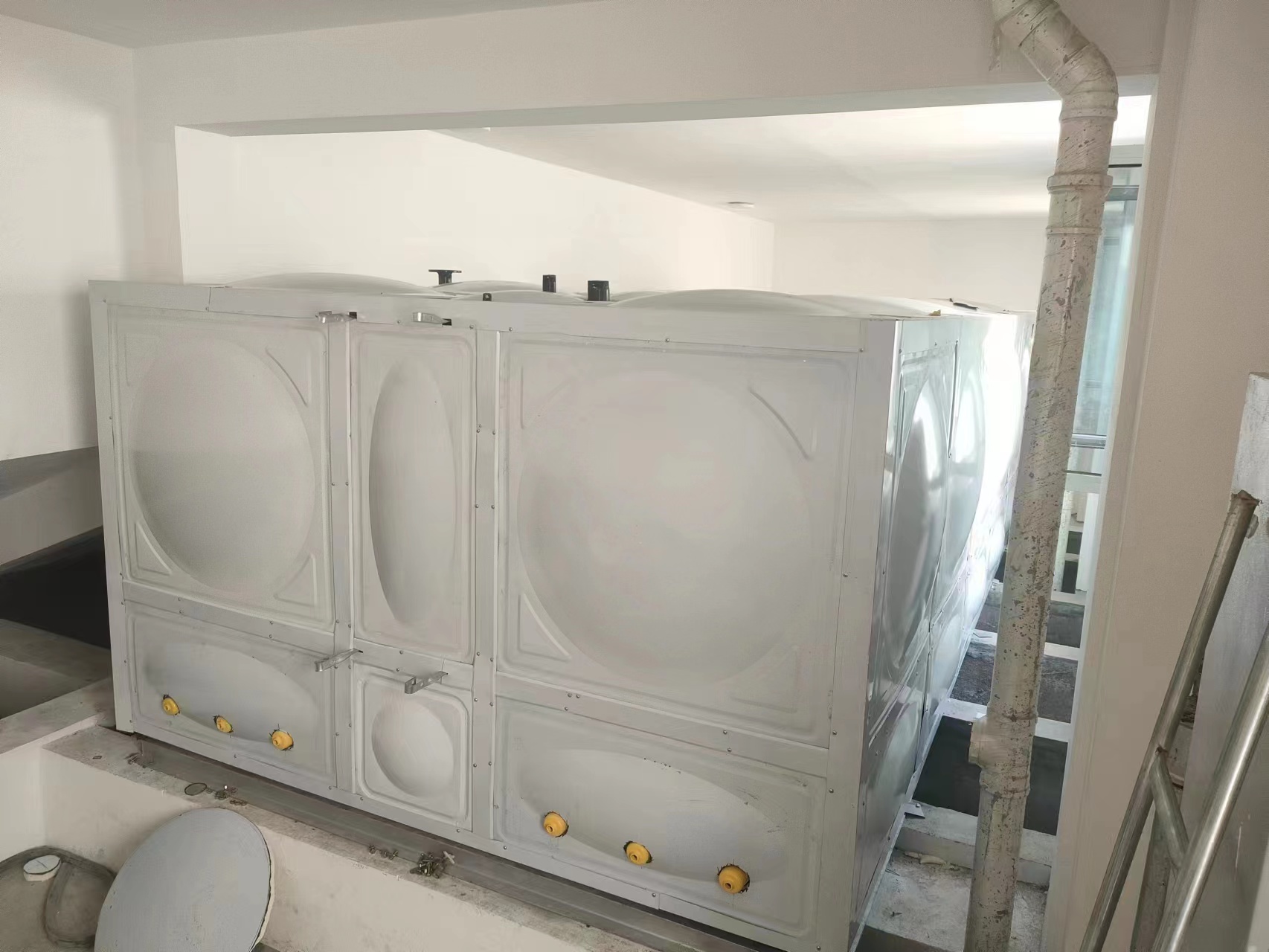 我廠(chǎng)承接的河北省滄州黃驊北航教育園校區(qū)三臺(tái)搪瓷鋼板聚氨酯保溫水箱已經(jīng)安裝試水完成,客戶(hù)對(duì)我公司的產(chǎn)品質(zhì)量和安裝服務(wù)表示認(rèn)可和肯定。安裝現(xiàn)場(chǎng)圖如下: