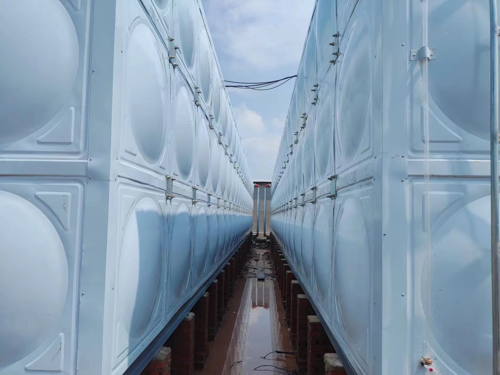 我廠承接的山東省煙臺(tái)棲霞市新好牧農(nóng)場兩臺(tái)315立方聚氨酯玻璃鋼水箱已經(jīng)安裝完成?,F(xiàn)場實(shí)拍照片如下: