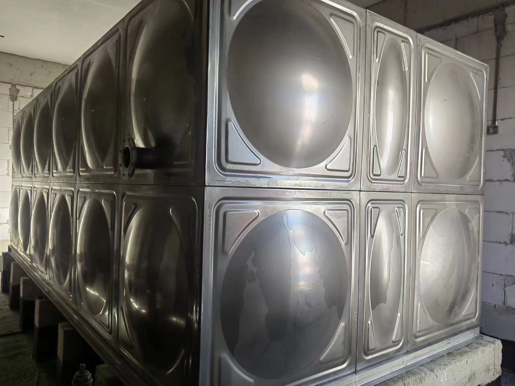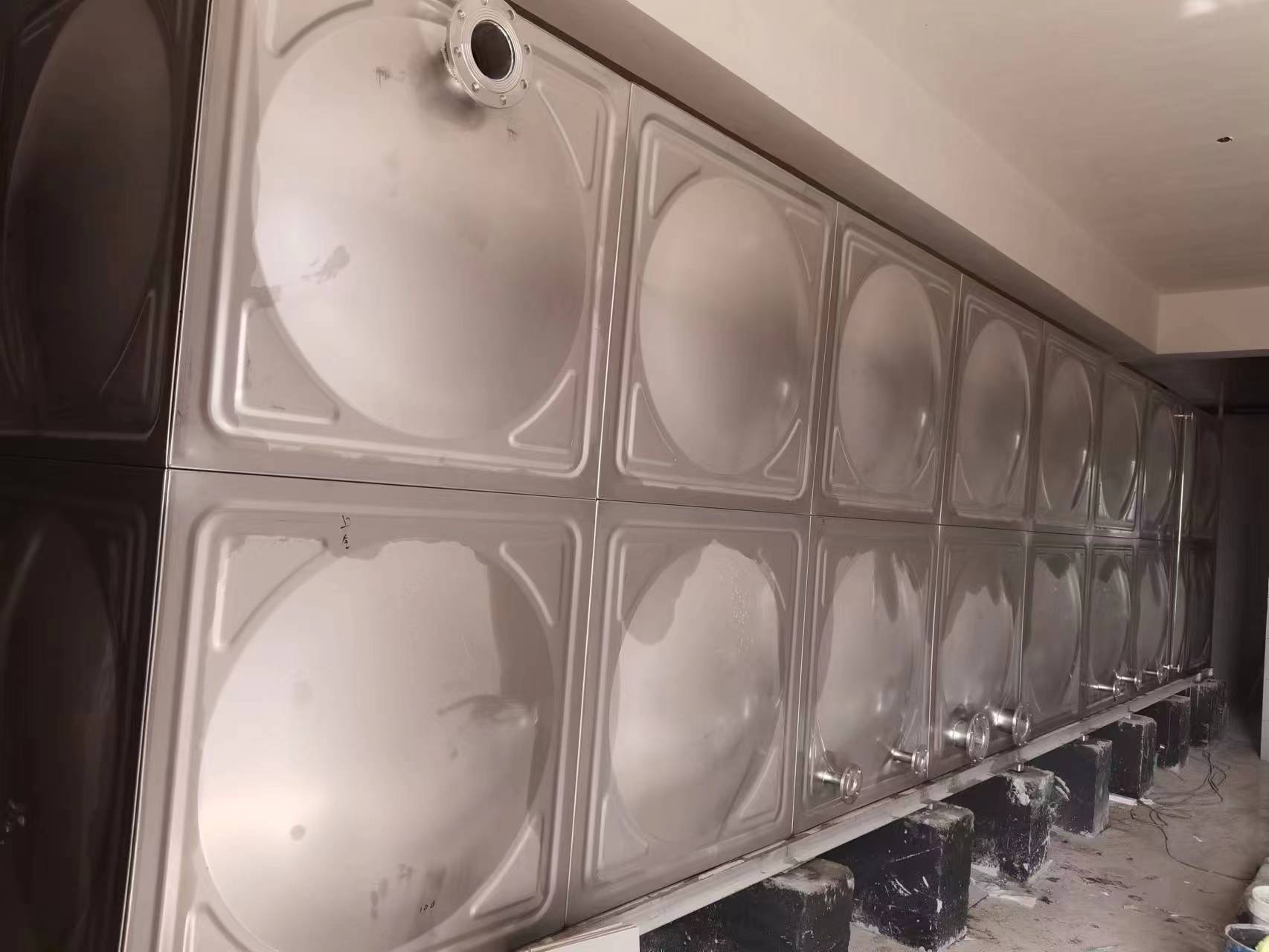 3,該不銹鋼水箱方便,舒適的組合:該單元由矩形不銹鋼成型板組裝焊接組成,根據(jù)設(shè)備安裝位置,可組合成多邊形,階梯形,L形等不同形狀的水箱。